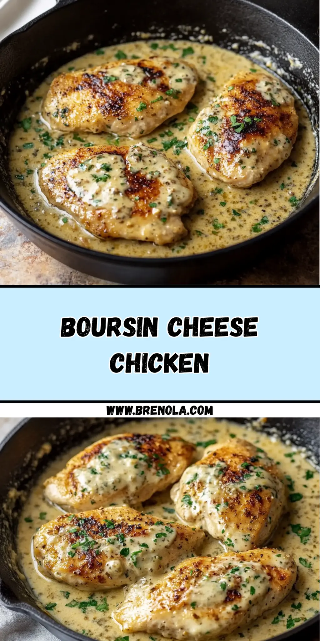 Make the Sauce: Pour in the chicken broth and add the Boursin cheese. Stir gently over low heat until the cheese fully melts and the sauce becomes smooth. Let it simmer for about 5 minutes to thicken slightly and stir in the chopped parsley.